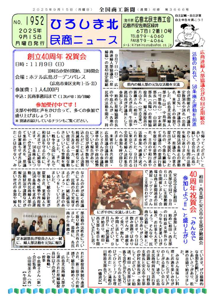 ひろしま北民商ニュース9月15日号
